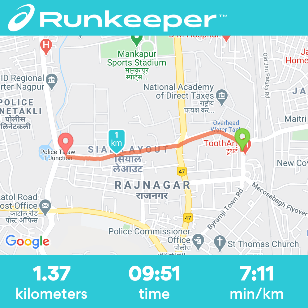 Running on the roads in our country is as good as running a steeplechase. Since the lockdown I have a fixed circuit starting from my house and looping back.